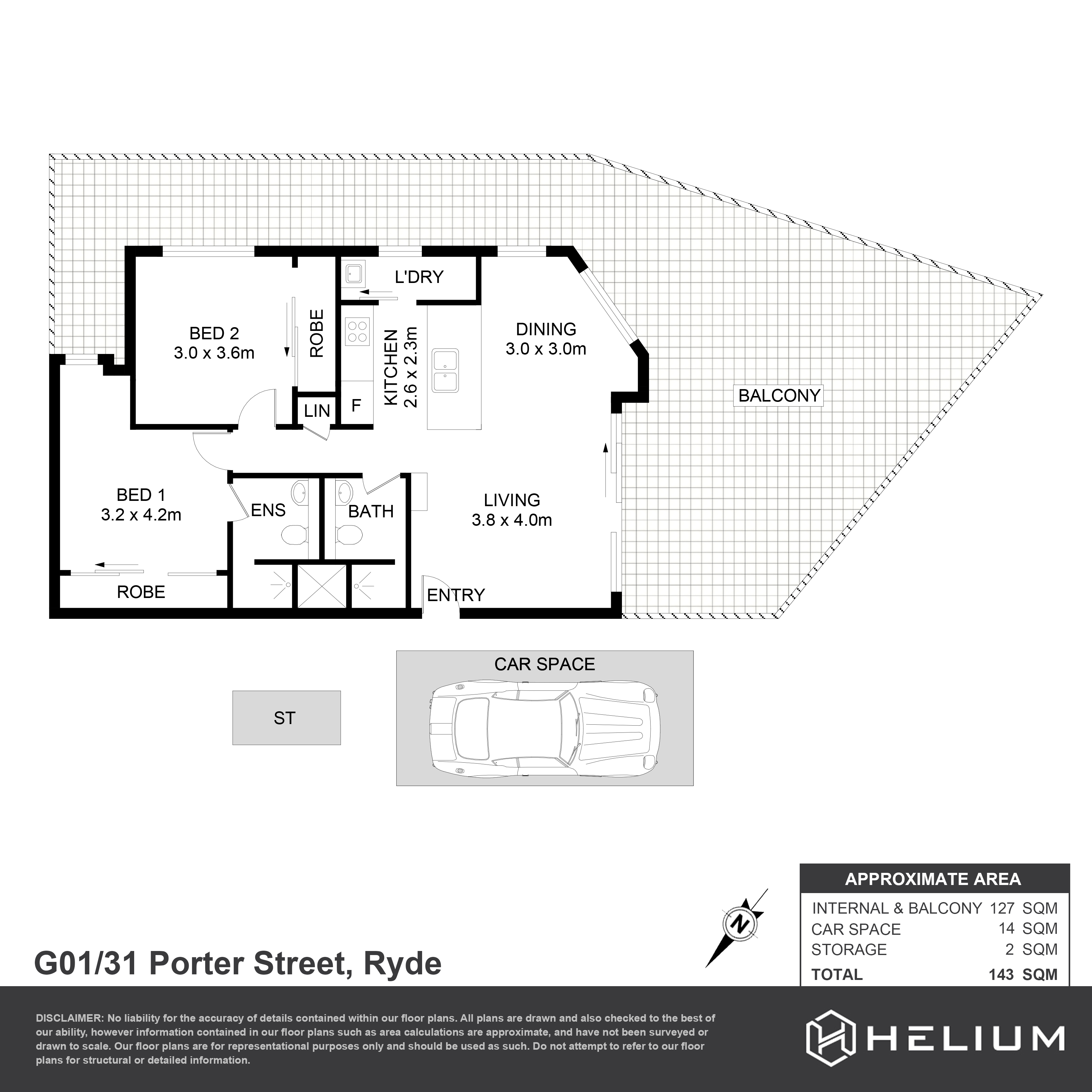 2Bedroom 2Bathroom 1Carspace 143sqm