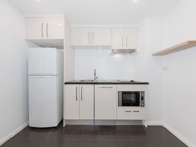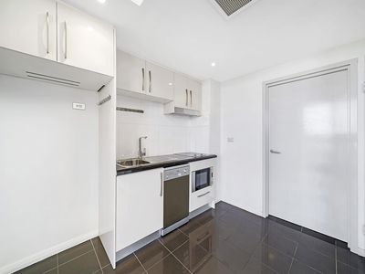 Step inside to discover a bright open-plan layout with a private balcony, a sleek kitchenette with induction cooktop, dishwasher, and microwave, and a modern bathroom with integrated laundry. Residents will also enjoy access to the building’s premium facilities, including a gym, indoor pool, and landscaped courtyard.