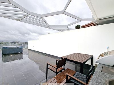 - Expansive rooftop with spa, outdoor dining area and panoramic city views