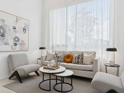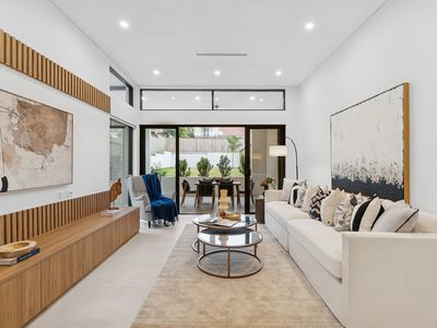 Featuring an easy-care modern approach to living with contemporary tones and colours, impressive entrance with high ceiling void, spacious light-filled rooms, and a separate guest room downstairs, with low maintenance landscaped gardens, multiple living areas, double garage, this home provides easy living for growing families or multi-generational families.
