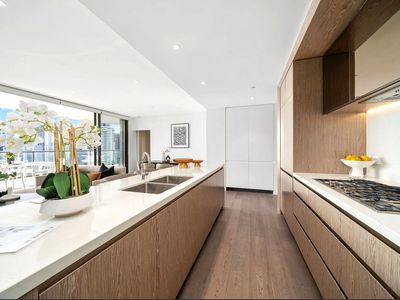 Framed by expansive floor-to-ceiling glass and flooded with natural light, the coveted north-east aspect captures sweeping panoramic views across Darling Harbour, the glittering city skyline, and the sparkling waterways, creating a spectacular backdrop to everyday living and entertaining.