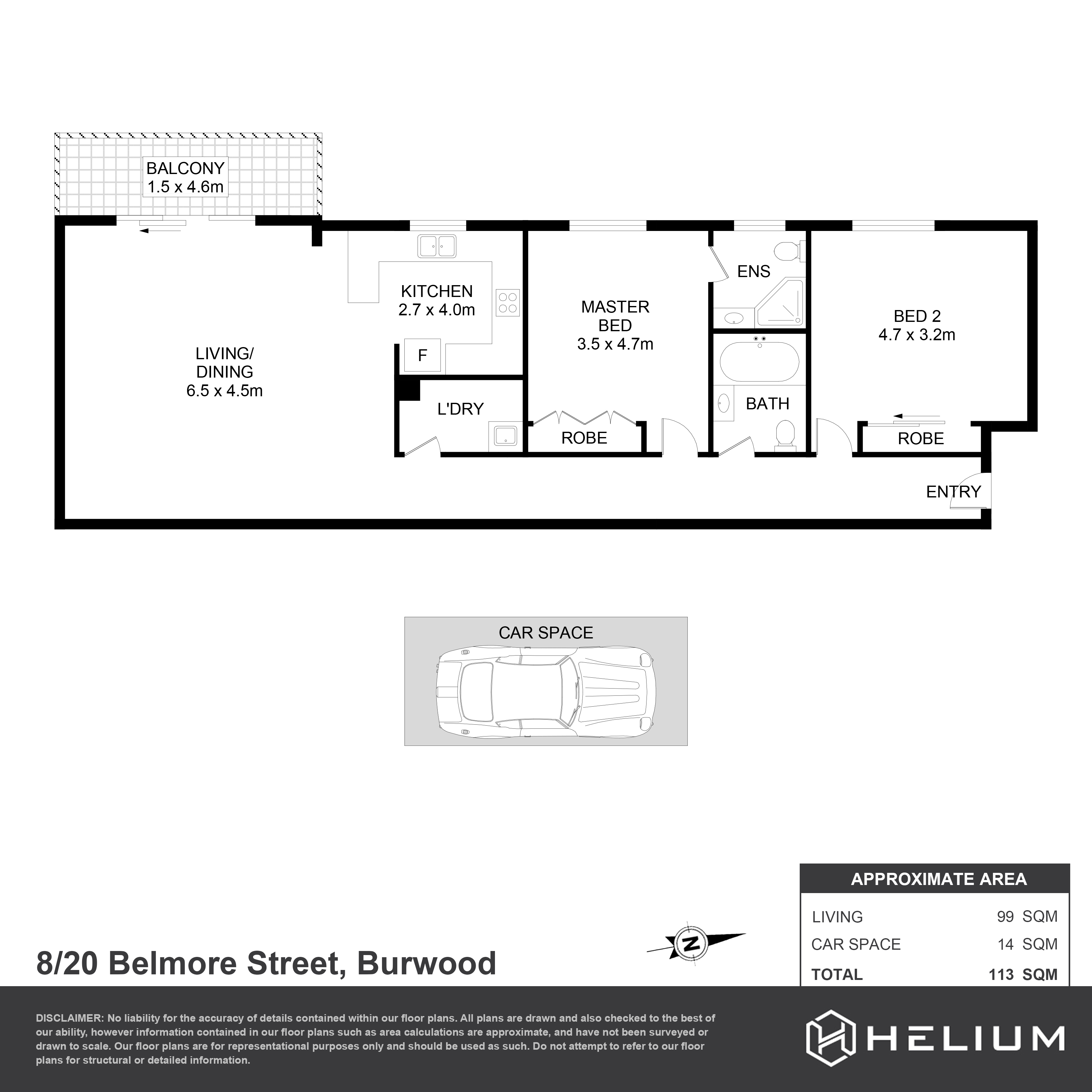 DISCLAIMER: The information contained herein has been provided by HELIUM PROPERTY MANAGEMENT, which we merely pass on without any representation or warranty given, intended or implied by us as to its correctness and with no liability accepted by us in this regard. You must rely upon your enquiries as to its accuracy or otherwise.